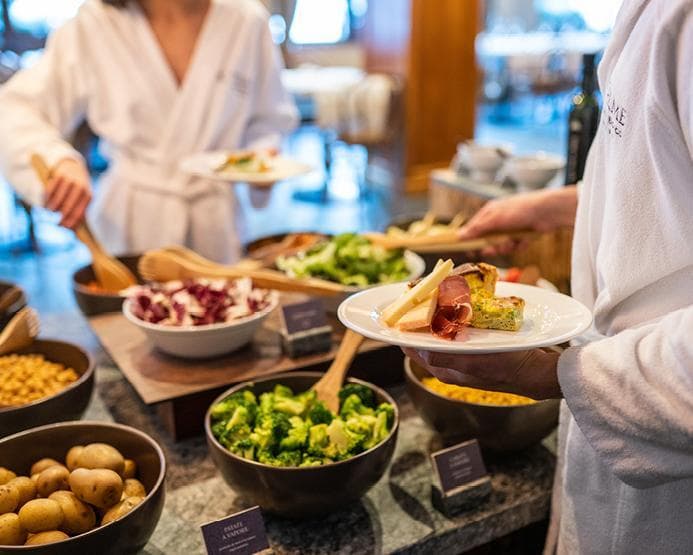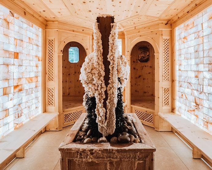 Dans l’espace bien-être de 1000 m² de QC Termemontebianco, les clients vivent la relaxation unique de QC Terme, avec un choix entre bains à remous, bassin panoramique, saunas, bain turc, parcours Kneipp, olfactif et merveilleuses salles de détente.